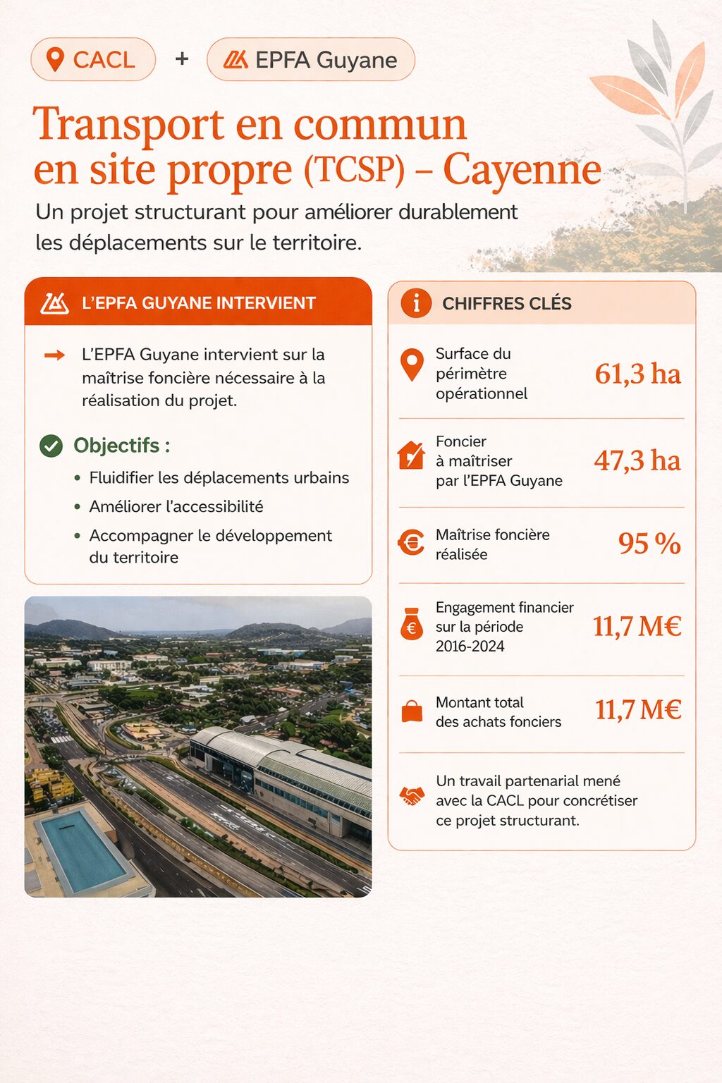 Le TCSP reliera plusieurs communes comme Matoury, Cayenne et Rémire-Montjoly, facilitant ainsi les déplacements quotidiens tout en réduisant les embouteillages.